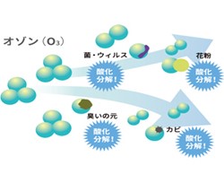 目に見えないウイルスや菌・ニオイ物質をオゾンの高い除菌力で徹底除去。